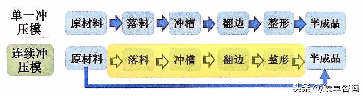 公司自主研发连续冲压模,从单一的冲压模,向多工序合并的连续冲压模改进,提高了生产效率,对质量的稳定性,一致性有了很大提升。