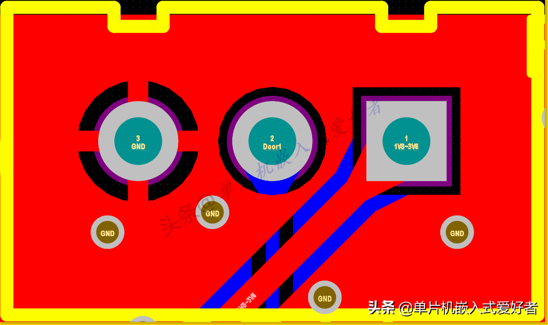 图中引脚3就是那种大面积接电的引脚,如果覆铜时直接与引脚3焊盘直连,那么焊接的时候需要更大功率的焊接设备才能方便的焊接对应元件,这主要是因为大面积的覆铜直连焊盘,会将焊接设备的热量快速的分散传递开,这样也会导致焊接过程中,焊接无法在正常的时间到达一个好的焊接温度,以至于容易虚焊。对这种焊盘最好的处理就是做成图中的十字形连接。