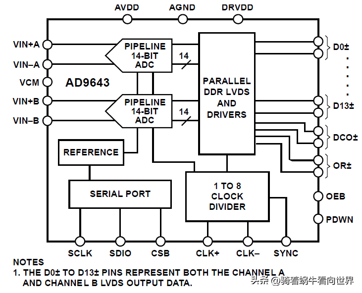 模拟信号的输入输出,参考时钟的输入。