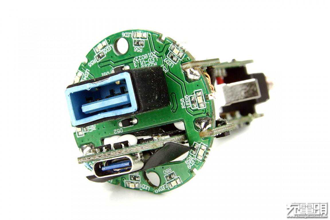 圆形PCB上只焊接了一个USB-A接口,USB-C接口位置镂空。