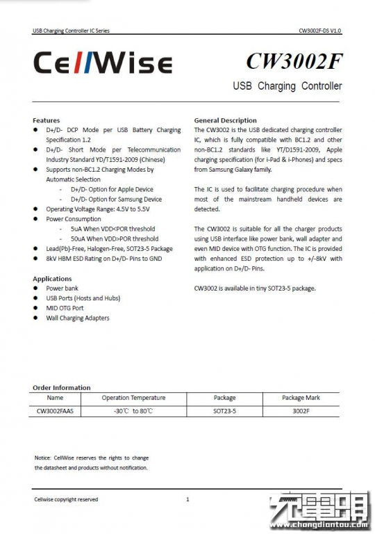 采用赛微CW3002F智能是被芯片的产品还有内置天猫精灵智能语音助手的ROAVF2车充、JDB20000mAh双向快充移动电源、ANKER24W双USB电源适配器、ANKERPowerPort+5USB-C充电器、魅族MU20桌面多口USB充电器等。