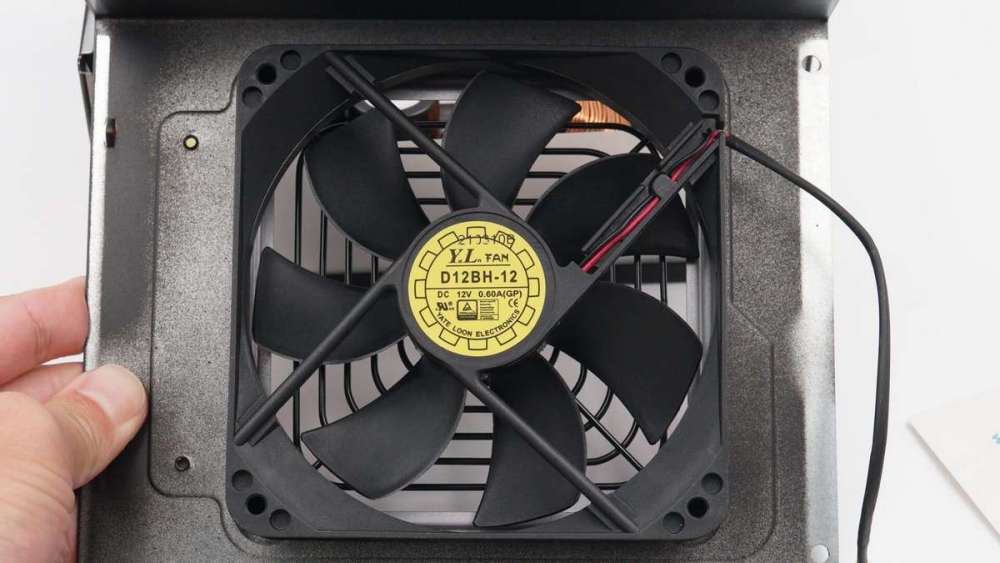 风扇供电插槽特写,插拔式设计组装方便,组装好后打胶加固,细节讲究。