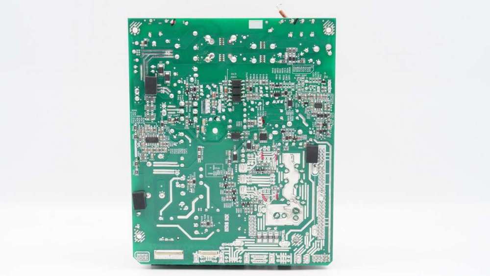 主板背面一览,设有PFC升压控制器、光耦以及MOS管等。
