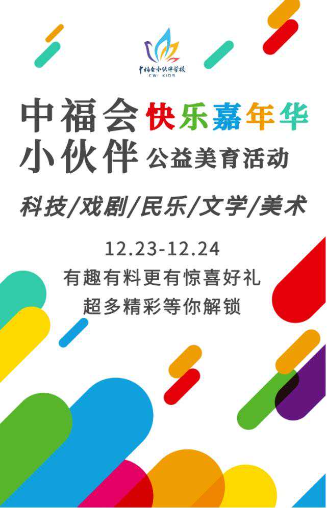 中福会小伙伴学校是中国福利会创新拓展校外教育的新平台。中福会小伙伴学校陆家嘴校区将举行“快乐嘉年华”公益亲子美育活动。集结中福会优质校外教育资源,邀请中福会少年宫、中国福利会儿童艺术剧院及中国福利会出版社等各领域大咖组成了阵容强大的“小伙伴专家导师团”,为孩子们带来独具特色的科技、创新、艺术美育学习盛宴,一起来了解吧!