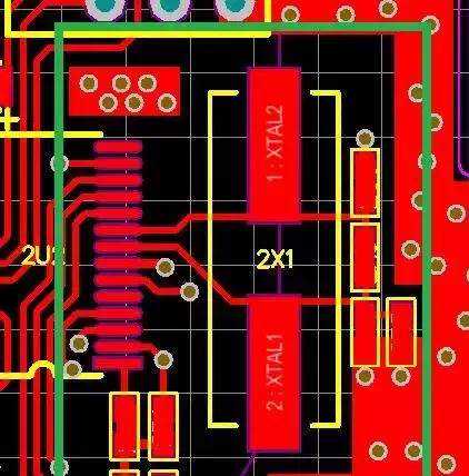 在PCB时钟电路区域只布与时钟电路有关的器件,避免布设其他电路,晶体附近或者下面不要布其他信号线:在时钟发生电路、晶体下使用地平面,若其他信号穿过该平面,违反了映像平面功能,如果让信号穿越这个地平面的话,就会存在很小的地环路并影响地平面的连续性,这些地环路在高频时将会产生问题。