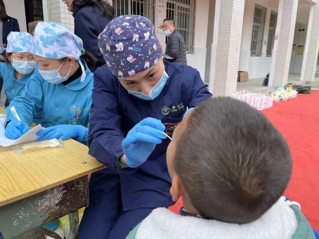 活动现场,射洪唐牙科的医生们为小朋友进行口腔检查和涂氟,并为每位小朋友赠送了精心准备的口腔健康用品。