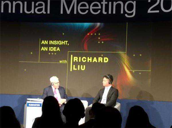 达沃斯当地时间1月24日下午消息,京东集团董事局主席刘强东参加了2018年冬季达沃斯年会的对话环节。被主持人问到京东名称的由来时,刘强东略显尴尬,称是初恋女友的名称与自己名称各取一个字而来。不过尴尬的是,当时刘强东的妻子章泽天就在观众席中。“真希望她没在现场”,刘强东说。