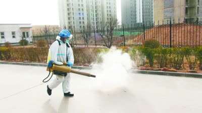 1月15日,陈志强在邢台御府名门社区进行防疫消杀作业。王永周摄/光明图片