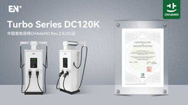(能动Nengdong2024年4月8)EN+科技TurboDC120K系列直流桩产品正式通过日本CHAdeMO机构测试,并获得机构颁发的认证证书。EN+科技正式成为中国首批荣获CHAdeMO最新充电标准认证的充电桩厂家。