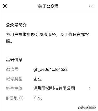 企查查显示,深圳君领科技有限公司成立于2020年9月11日,注册资金100万元。法人代表为郝先英,同时也是公司大股东及实际控制人。据该公司官方公众号“金牛申卡”显示,公司主要为用户提供申领会员卡服务。