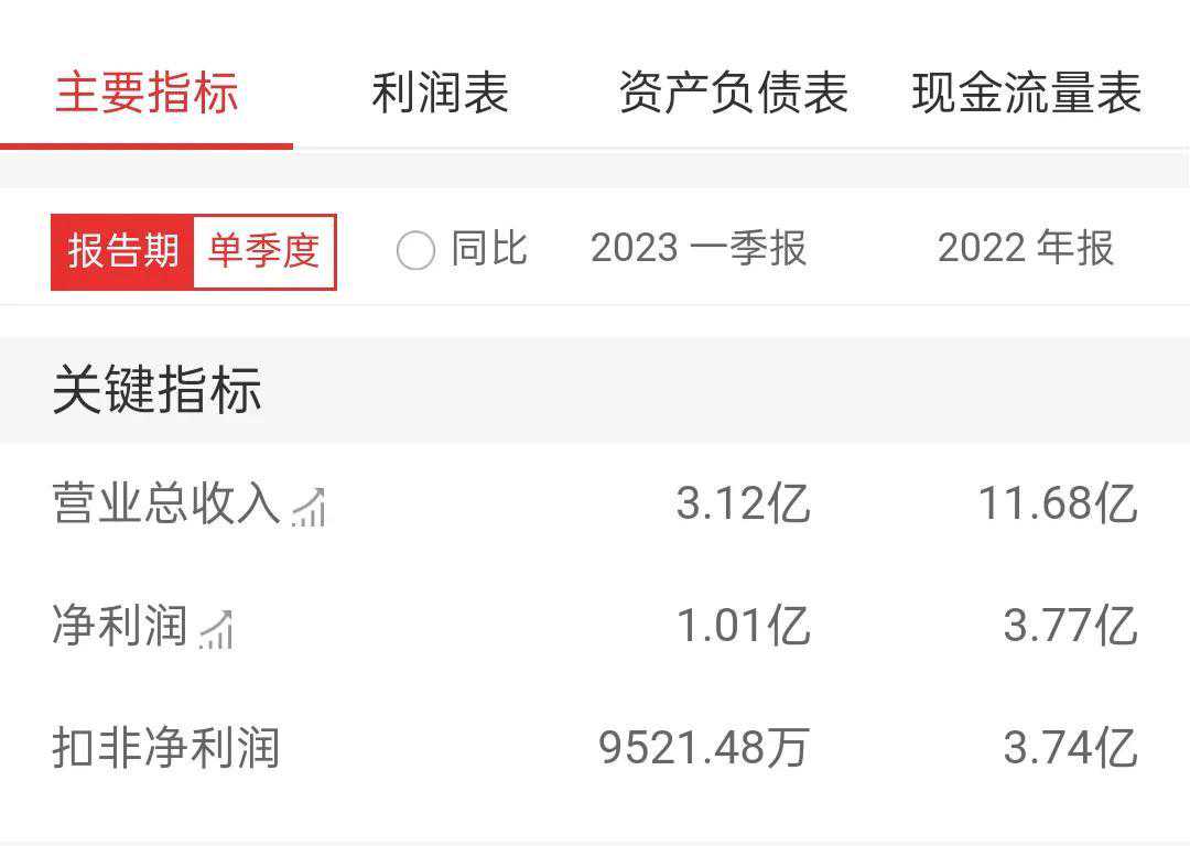 2022年营业收入11.68亿元,净利润3.77亿元,2023年一季度营业收入和净利润都实现翻倍增长,经营态势非常不错。