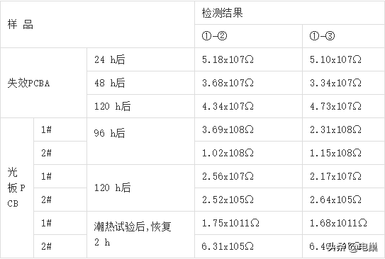 4)在不同时间对PCBA及PCB样品进行绝缘电阻值测量;