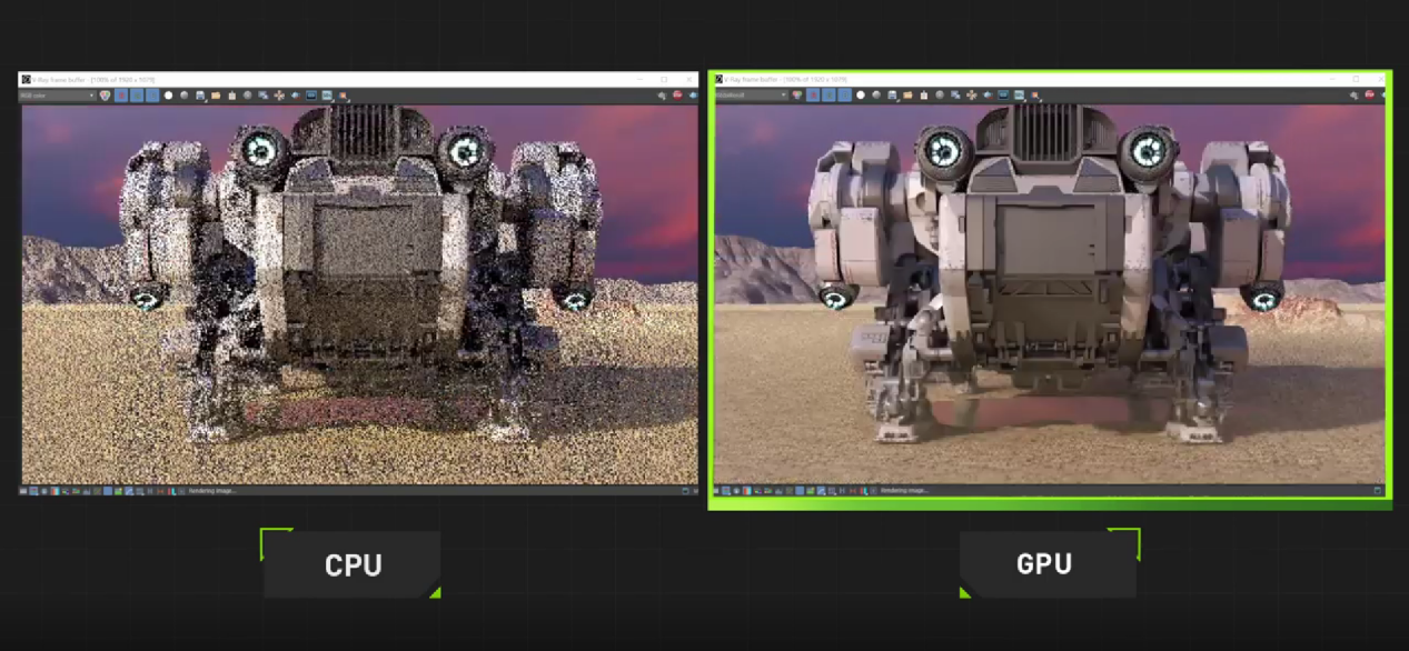在建模渲染类软件中,GeForceRTX4080可以利用CUDA为工作提供硬件加速,目前几乎所有的建模软件都会对NVIDIA的GPU有优化,所以能做到效率、稳定和兼容性的共存。比如在常用的渲染工具V-Ray中,可以借助RTX加速的光线追踪,实现高性能最终帧渲染。借助搭载AI的降噪功能,GPU可进一步加速交互式渲染。