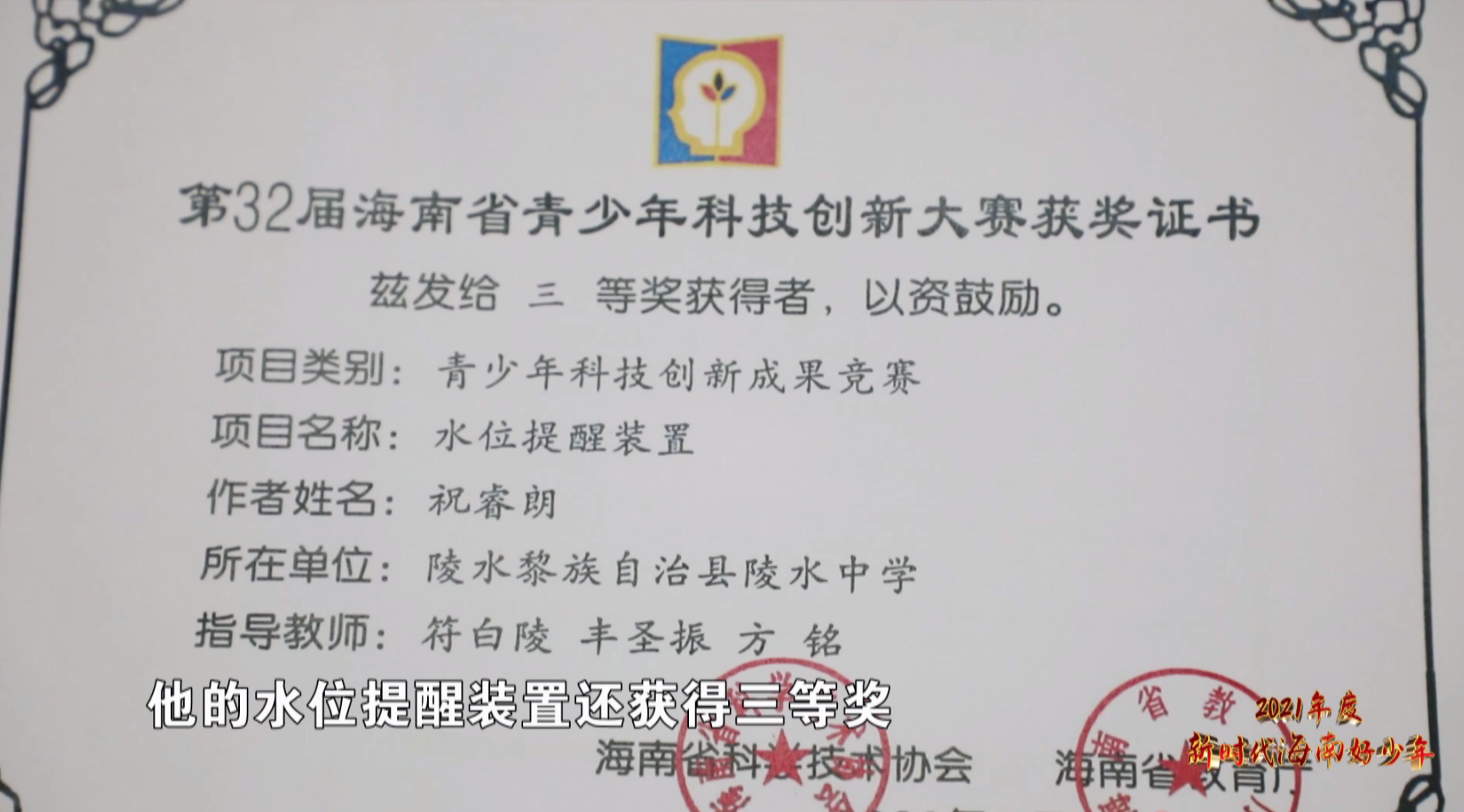 在陵水黎族自治县陵水中学有这样一位男孩,他为减少青少年溺水事件用智能编程发明水位提醒装置,获得国家专利。今天让我们一起走进“创客”少年祝睿朗的故事!