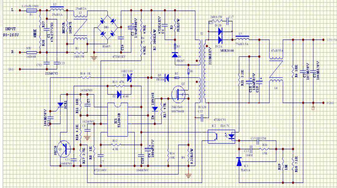 偏小变压器反激开关电源设计之参考建议本案例是EC-2828变压器全电压输入,输出功率60W。