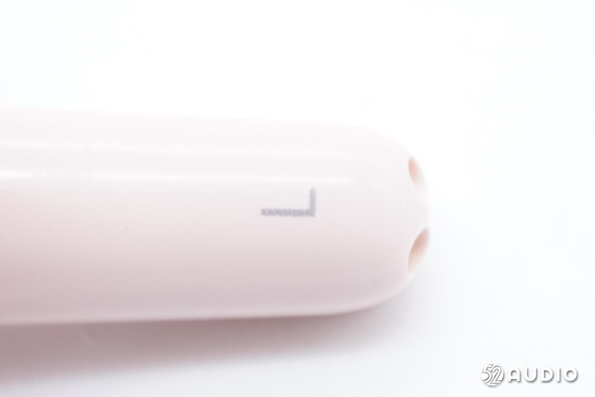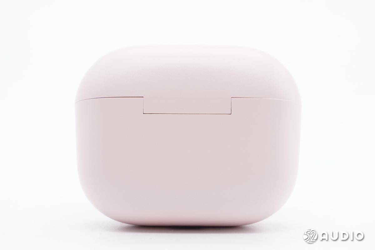 喜马拉雅AI真无线耳机1S充电盒采用了圆角方形设计,配色上则是使用了少女感爆棚的藕粉色,在充电盒的正前方设置有一颗“听”蓝牙配对按钮。