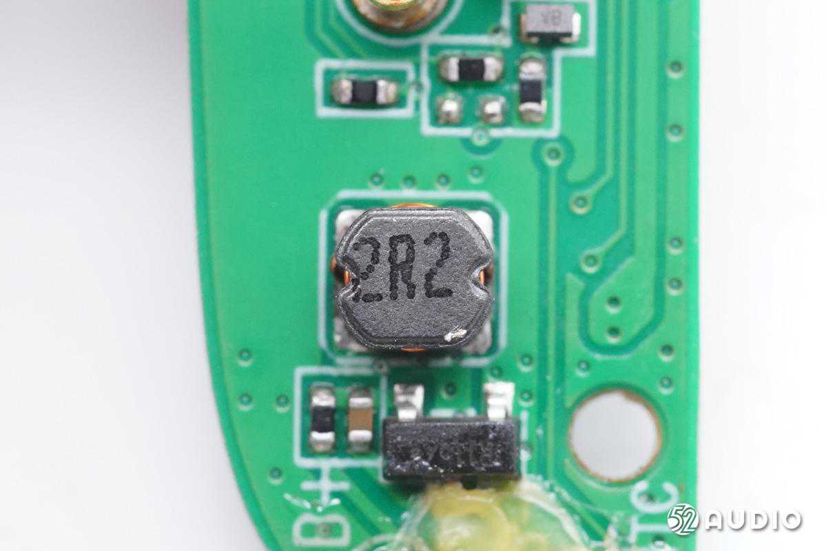2R2升压电感,配合电源管理芯片升压为耳机充电。