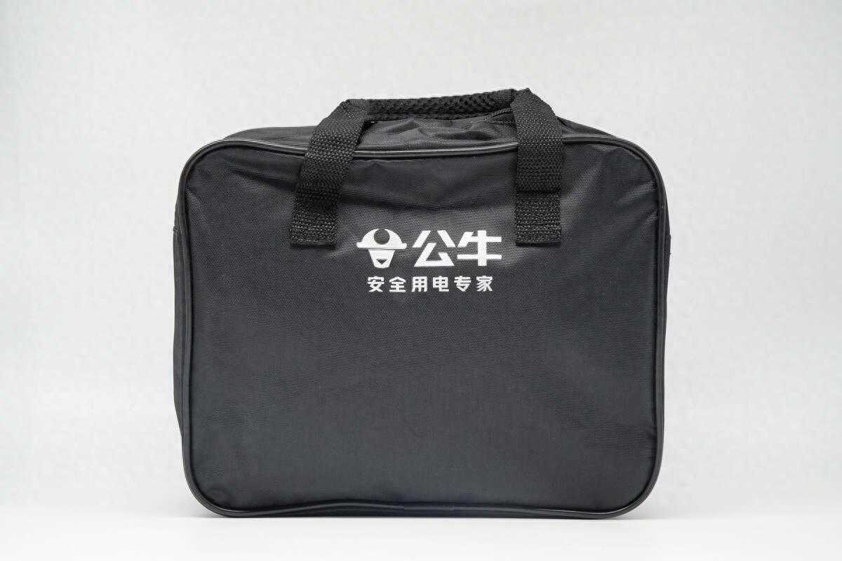 公牛安全放电插座采用无纺布收纳袋收纳,具备一定防尘防水效果,单手可提,出行更随意。收纳袋正面印有公牛LOGO、品牌名称以及“安全用电专家”字样。
