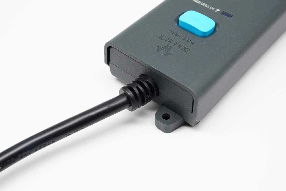 公牛安全放电插座为一体式设计,两端分别为放电枪枪头和插排,中间为加粗线材连接。