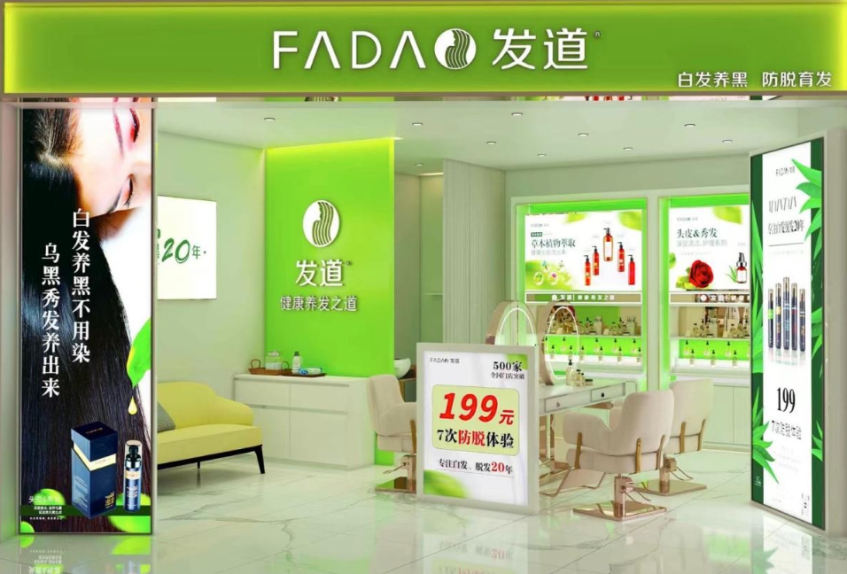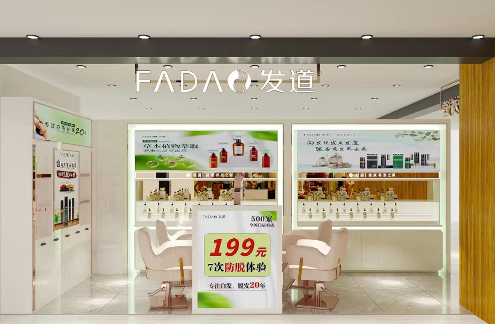 现如今,发道已成功入驻全国各大商场和超市,开设发道养发专柜,目前的养发馆直营门店已达到500+,并且规模还在持续扩大。
