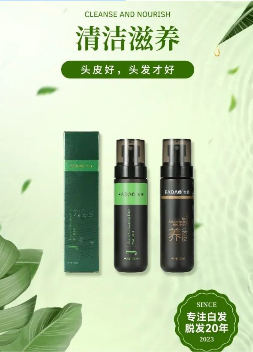 在品牌发展的20年里,发道专注头皮、头发护理领域,以白发养黑、防脱生发为研究方向,以创新配方和创新工艺为手段,深耕养发护发赛道,不断迭代和创新,同时采用传统中草药配方,结合现代生物技术,生产出集“洗护养”三位一体的养发护发产品,旨在为消费者提供更好的头发头皮养护方案。