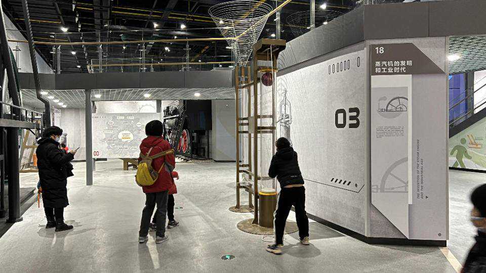 省科技馆展览教育区总面积4万余平方米,主要包括常设展厅、儿童展厅、山东科技发展成就展厅、室内外公共空间、智慧科技馆、科普影视区、专题展厅等区域。展览教育区内布展和展品制作于2022年4月份启动,2022年12月基本完成。展览教育区内布展和展品按照“传承、启迪、实践”的理念,以科技发展历程及趋势为主线,采用国内独创的“多节点、小主题”布展思路,选取人类科技发展进程54个重大科技事件作为核心展示节点,共布设800余件展品。