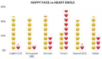 例如,🇫🇷法国人最爱使用❤️,使用频率是其他语言平均值的4倍;