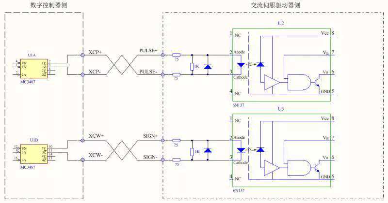 控制器输出的位置指令,一般是经线驱动器处理的差分对信号,而驱动器一般用高速光耦接收位置指令脉冲,参考图三。