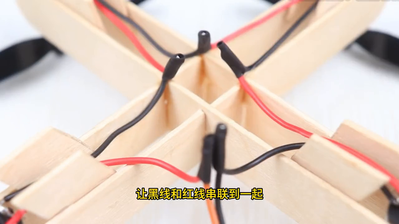 ·然后连线,让黑线和红线串联到一起,连线的末端用胶水固定。