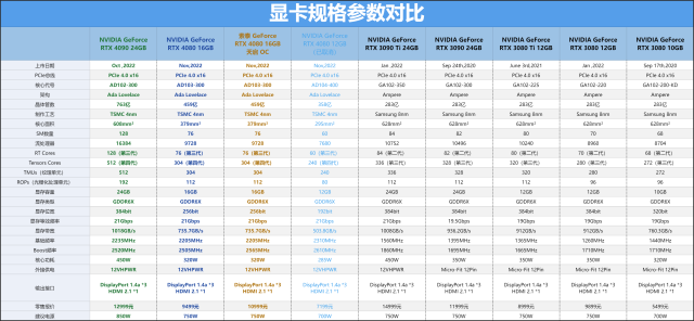 其他参数方面,RTX4080RTX4080标配9728个CUDA,128个第三代RTCores,512个第四代TensorCores,并且用上了16GB的GDDR6X显存,大显存配合性能上的提升更可以为游戏以及创作者带来更好的使用体验。