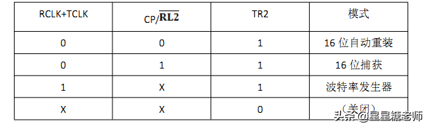 寄存器T2CON的位TCLK和(或)RCLK允许从定时器1或定时器2获得串行口发送和接收的波特率。当TCLK=0时,定时器1作为串行口发送波特率发生器;当TCLK=1时,定时器2作为串行口发送波特率发生器。RCLK对串行口接收波特率有同样的作用。通过这2位,串行口能得到不同的接收和发送波特率,一个通过定时器1产生,另一个通过定时器2产生。