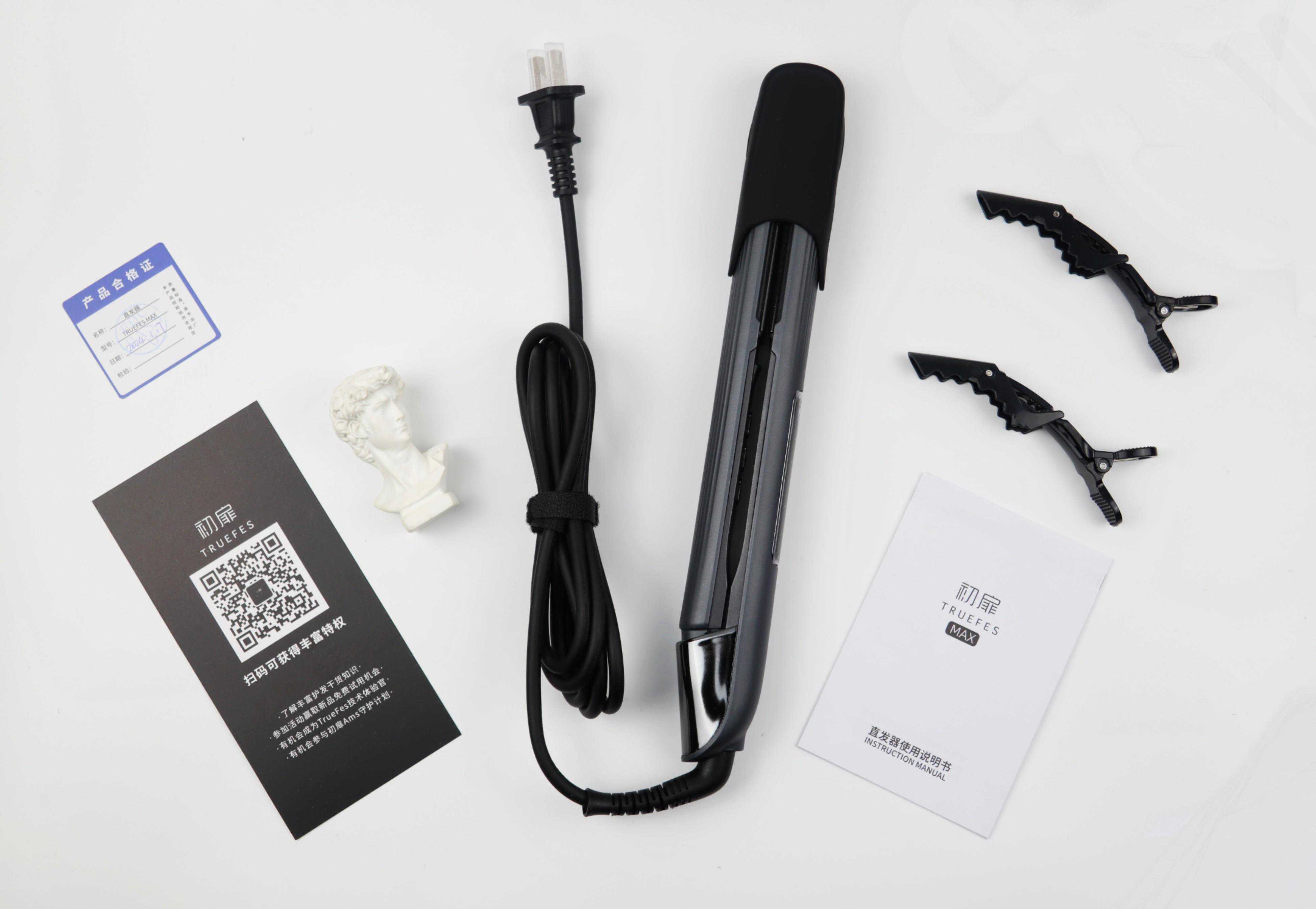 打开包装可以看到了除了直发器本体,此外赠送有两个发夹、说明书及合格证,发夹起初会觉得没有什么用,但是用了后觉得超级nice,紧密度很高,除了夹头发时可以用,洗脸化妆时都可以用