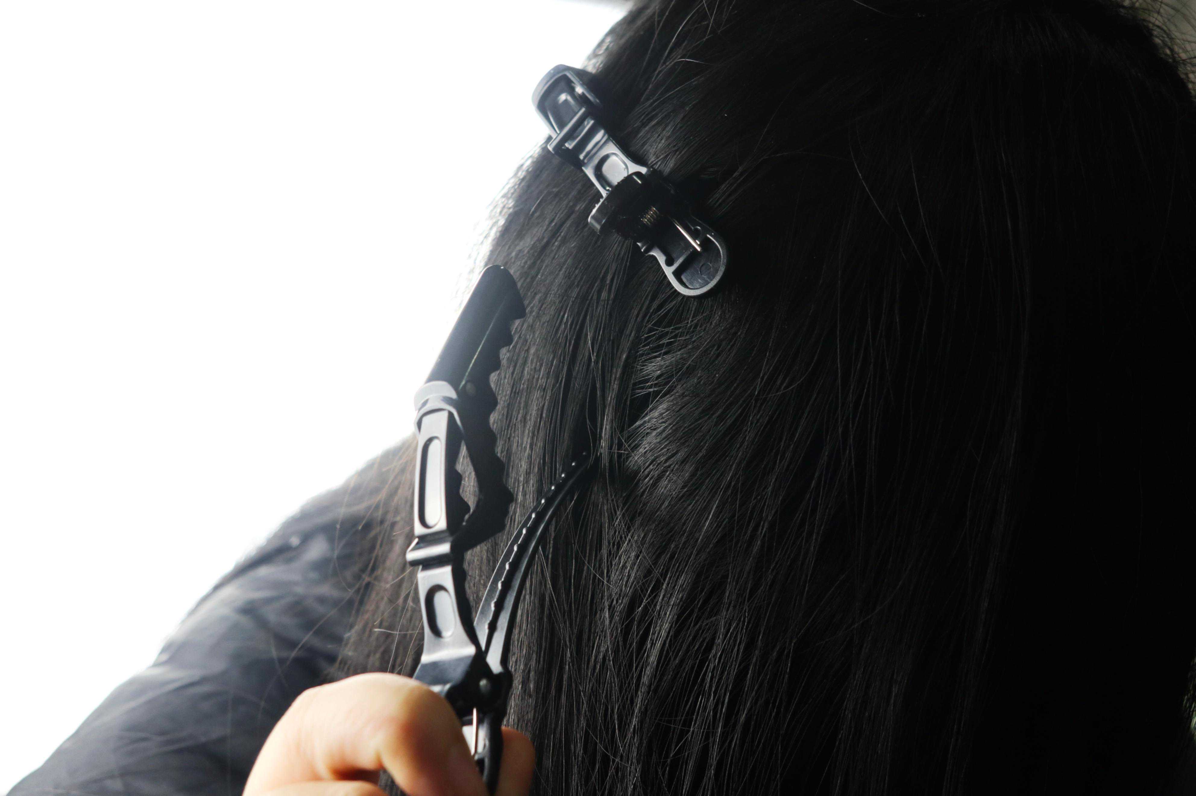 同时搭配使用还有发夹,将暂时不需要直发/卷发往上“固定”住。