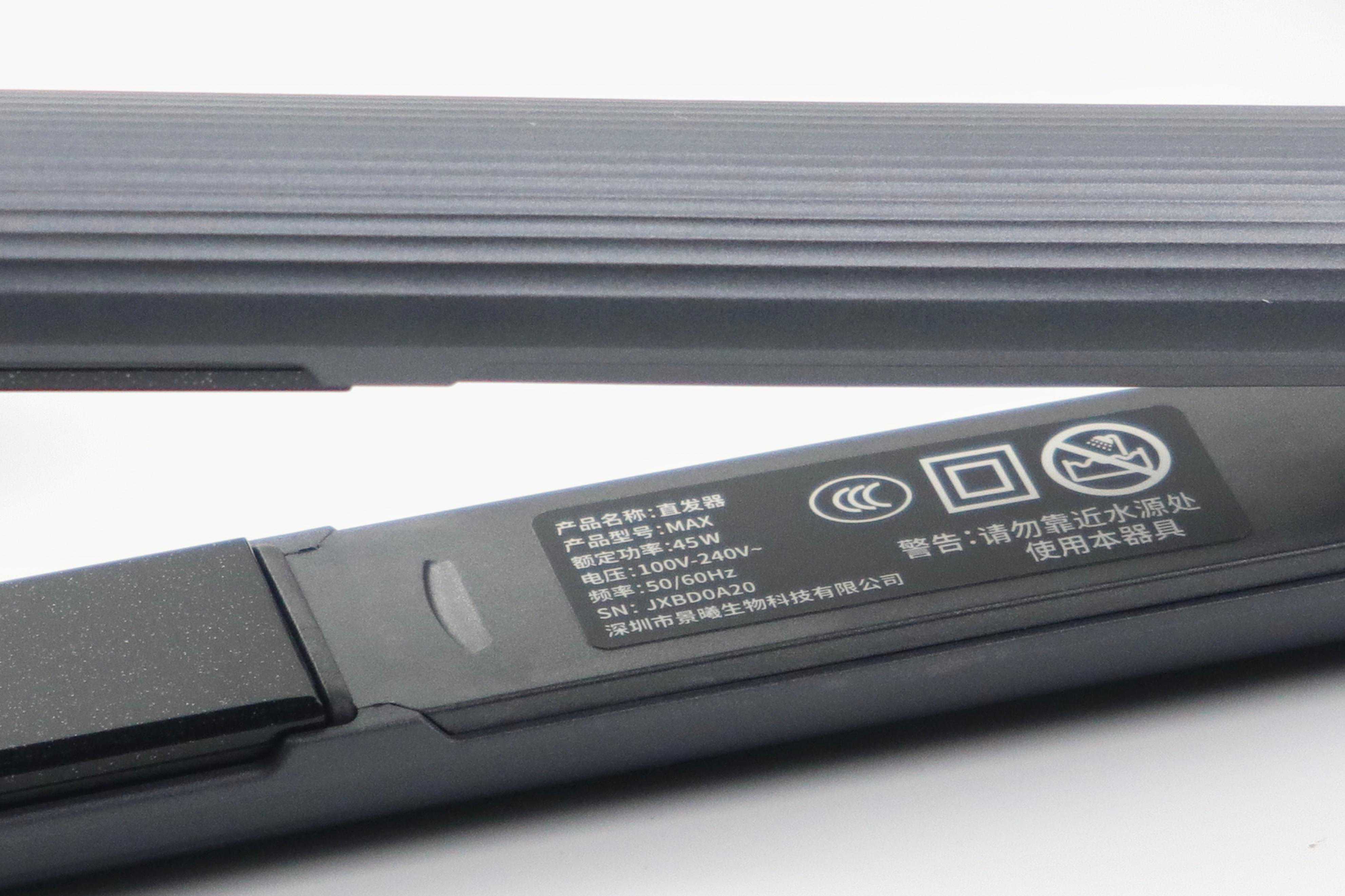 出厂状态下直发器前端游橡胶套将直发器上下部分夹持住,尾部是一体式的电源线。