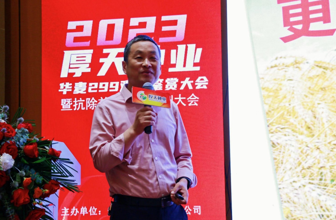 交流会上,厚天种业洁旱事业部负责人刘传福详细介绍了“华麦299”的特征特性。