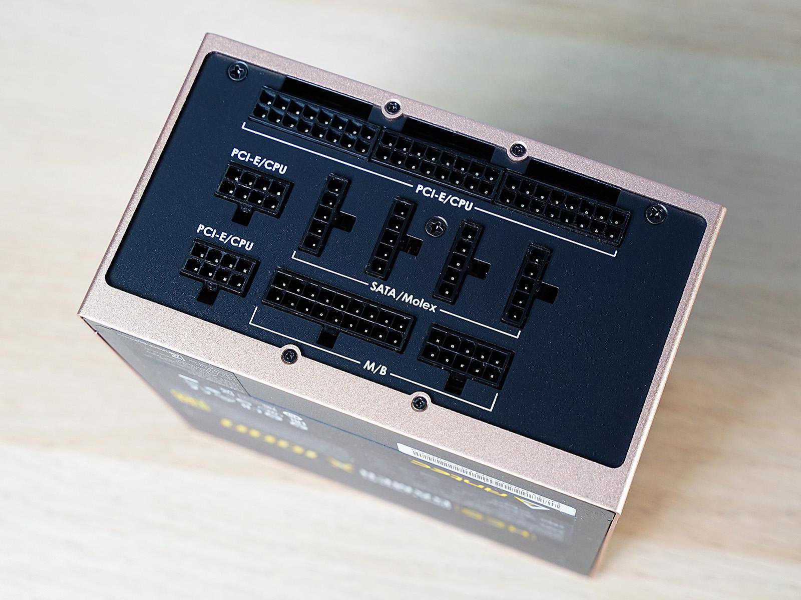 该电源长度为16cm(该系列电源850w以及更低型号的长度是14cm);两侧为玫瑰金色的金属板,有品牌LOGO和型号;在电源输入口旁边还有一个Hybrid模式按键,开启后电源风扇会在低负载时停转,提供更好的静音表现。
