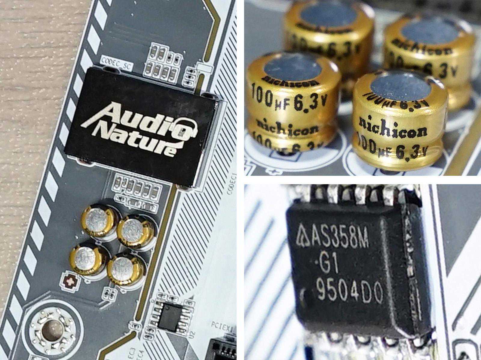 声卡方面,七彩虹CVNZ490使用了NatureAudio强化方案,声卡芯片带屏蔽罩,内部的声卡是RealtekALC892,另外配备了尼吉康音频电容以及一颗AS358M作为音频功放芯片。