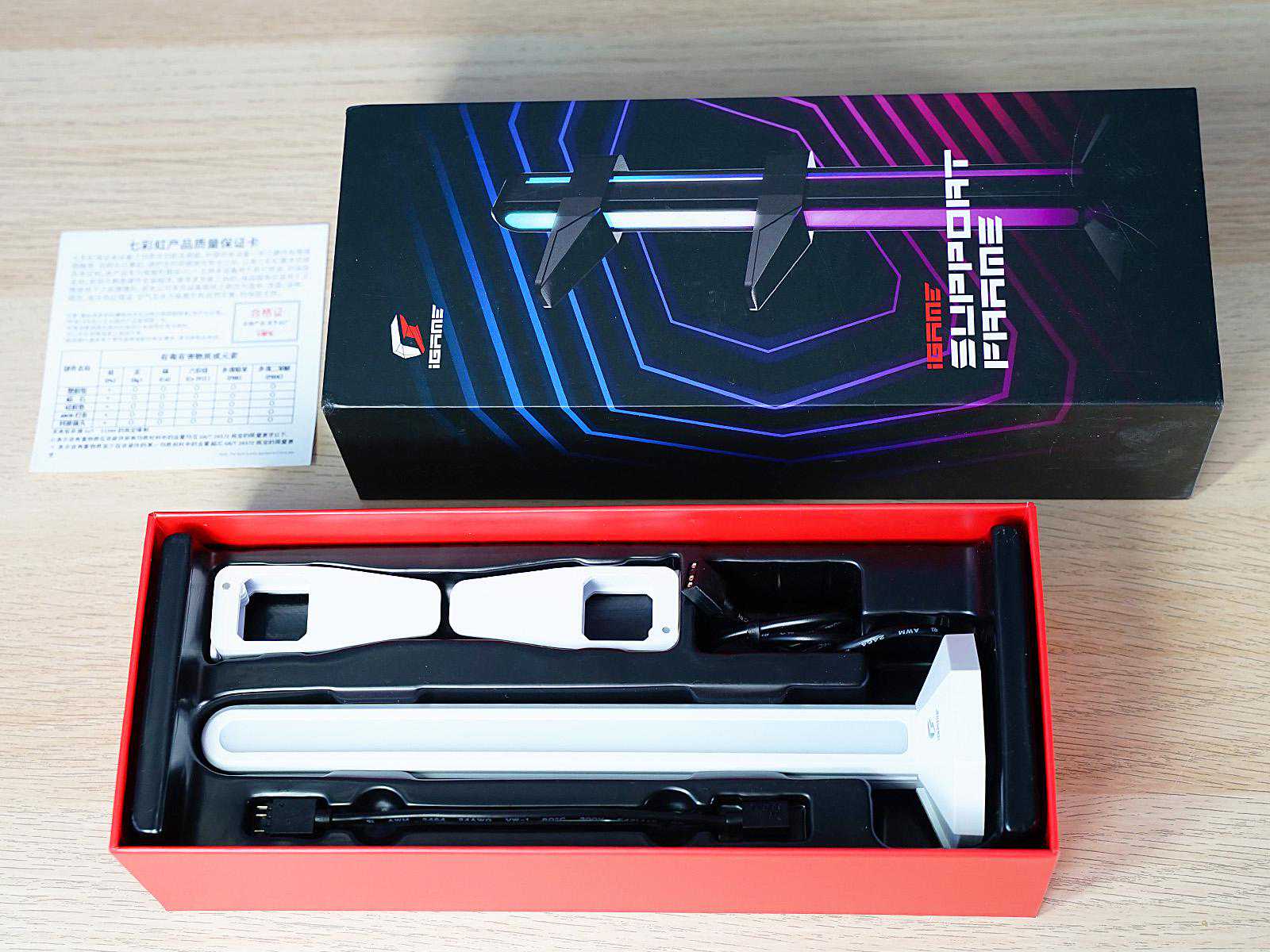 iGame幻彩显卡支架,听名字就知道是支持RGB光效的,选择了白色款,材质为ABS,尺寸为242X87X63mm。