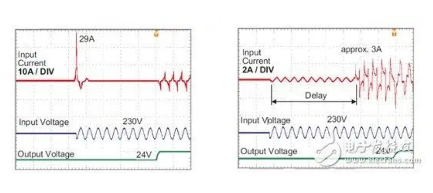 某些大容量的电气设备接通或断开时间,由于电网中存在电感,将在电网产生“浪涌电压”,从而引发浪涌电流。