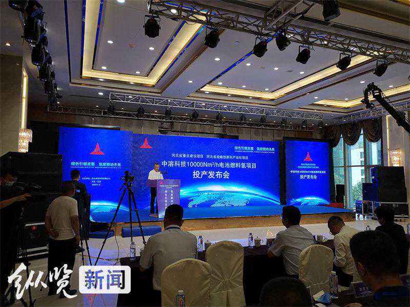 6月12日,中溶科技每小时10000标方焦化尾气制燃料氢项目在河北迁安投产。图为投产发布会现场。记者郭猛摄