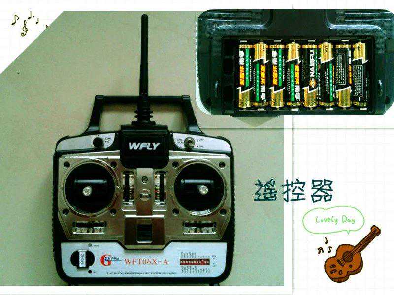 【遥控器】,天地飞6通道2.4GHz遥控。它的大块头令我吃惊不已,但这远没有那后面八节电池震撼。我估计等我练熟了这款控,那战地2里的直升机就是浮云啦……