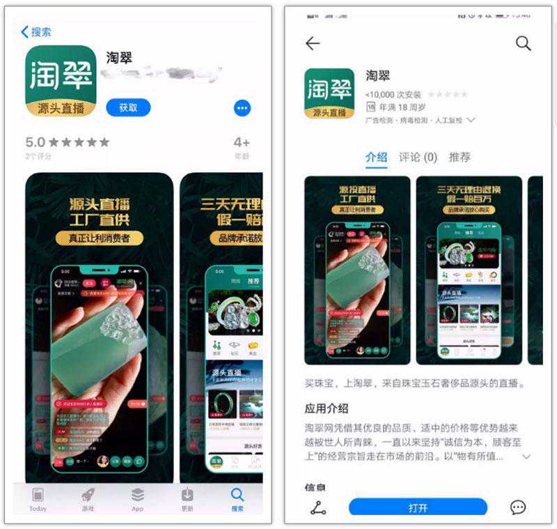 12月19日,黑蜂科技为福建知名珠宝翡翠企业定制的首款珠宝翡翠直播+多商城系统「淘翠APP」正式登陆华为和百度应用市场,提交代码相隔不到24小时,又成功上架苹果应用商店!
