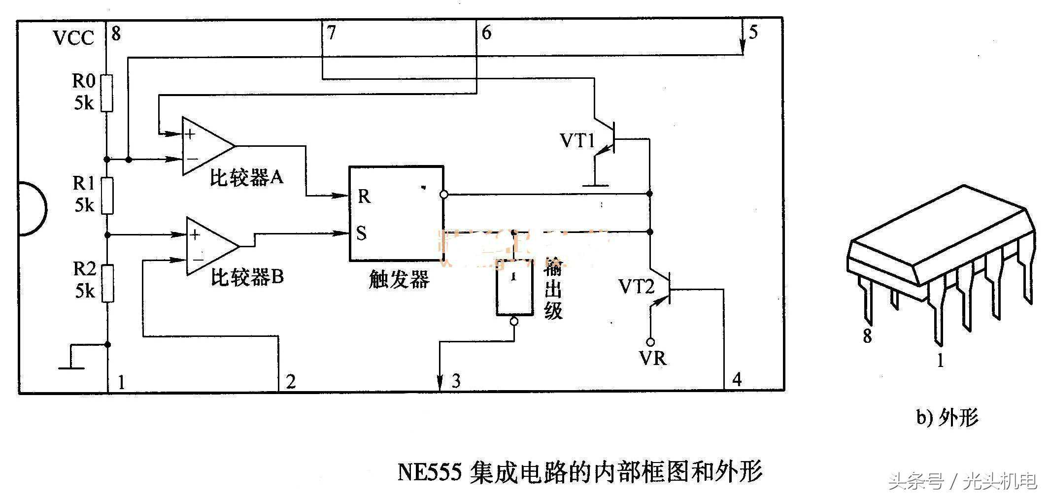 (3)分析集成电路的应用电路过程中,没有集成电路的引脚作用资料时,可以借助于集成电路的内电路框图来了解、推理引脚的具体作用,特别是可以明确地了解哪些引脚是输入脚,哪些是输出脚,哪些是电源引脚,而这三种引脚对识图是非常重要的。当引脚引线的箭头指向集成电路外部时,这是输出引脚:箭头指向朝里则是输入引脚。