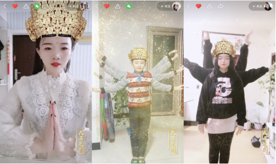这次直播不仅为老铁带来了一场穿越时空的在线“云游”,快手还专门以大足石刻的文物为原型,定制了魔法表情。大家可以带上虚拟的金箔观音花冠,甚至可以模拟2005年因春晚大火的“千手观音”舞蹈,让自己变身为领头的舞者。