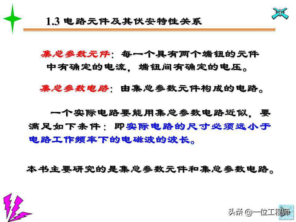 电路是由用电设备(称为负载)、元器件、供电设备(称为电源)通过导线连接而构成的提供给电荷流动的通路。电路是电场的一种特殊形式,当电场被束缚在电荷流动的路径周围很小的范围时,即形成电路。