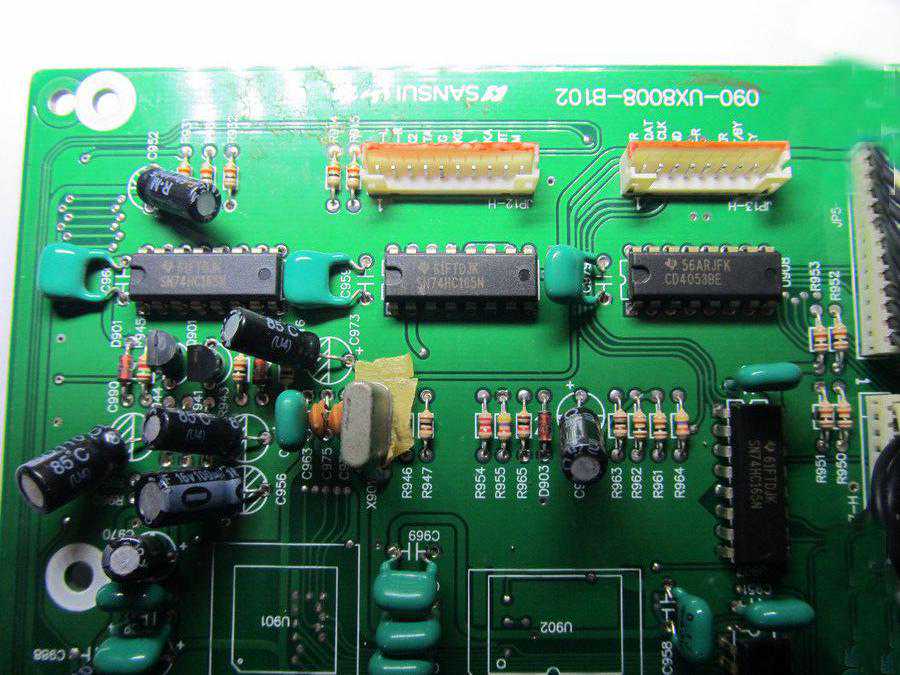 今天垃圾店收到一台山水UX800功放,以前知道这机器刚出来时要几千银的,现在当垃圾收回才二三百元,机器收回通电机器会启动保护不能正常工作,经检查是里面电容坏更换后一切正常工作,维修过程就省了,只介绍一下机器所使用的元件。
