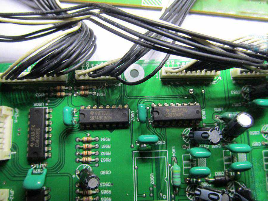 另一边,一颗CD4053,一颗74HC165N,还有一颗CD4096BE,又是寄存器