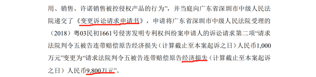 “曾在庭审中将原诉求的第二项1000万元的经济损失赔偿金变更为9800万元。”