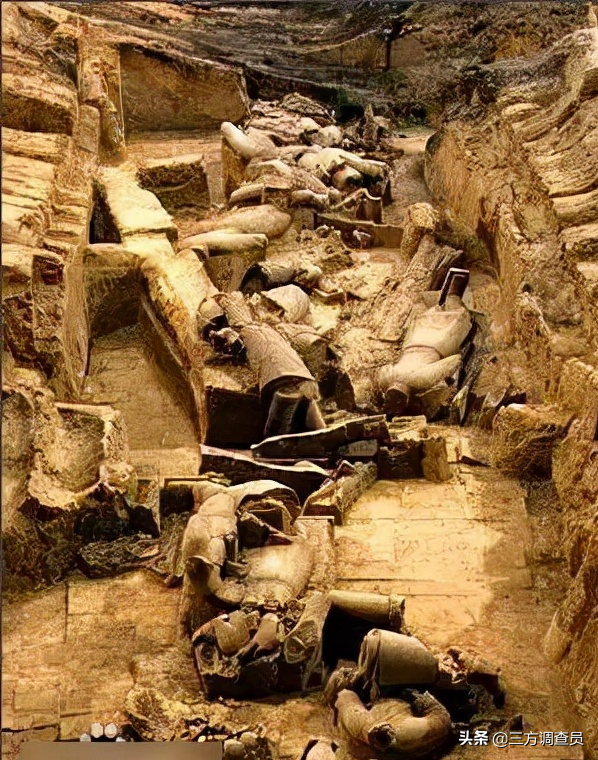 更为恐怖的是兵马俑坑也只是整个秦始皇陵最外层的一部分,它只是整个地下皇陵的冰山一角。