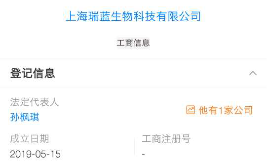 另据天眼查可知该公司成立于今年5月15日,业务范围涵盖生物科技,医药科技、健康科技、信息科技领域内的技术开发、技术服务、技术转让、技术咨询,商务信息咨询,企业管理咨询,会议服务,展览展示服务,营养健康咨询服务,文化艺术交流活动策划,市场营销策划,企业形象策划,品牌管理,工程勘察设计,设计、制作、代理、发布各类广告,市场信息咨询与调查(不得从事社会调查、社会调研、民意调查、民意测验),化工原料及产品(除危险化学品监控化学品、民用爆炸物品、易制毒化学品)、食用农产品、机械设备、日用百货、卫生用品、家用电器、化妆品、工艺品(象牙及其制品除外)、电子产品、文化办公用品、一类医疗器械的销售,从事货物及技术的进出口业务。【依法须经批准的项目,经相关部门批准后方可开展经营活动】等。